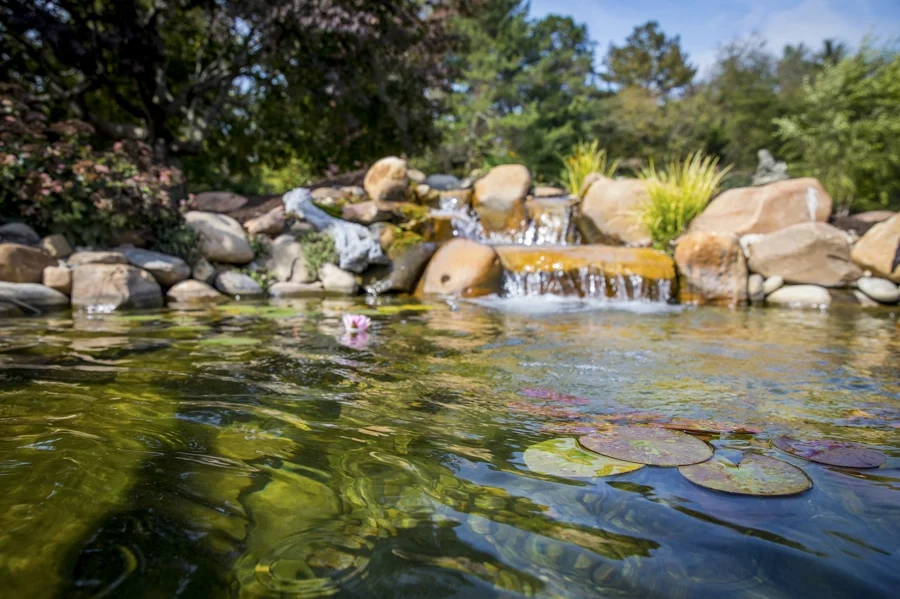 Custom ponds, pondless waterfalls, fountains & urns, ecosystem ponds, Master Certified Aquascape contractors, complete installations.